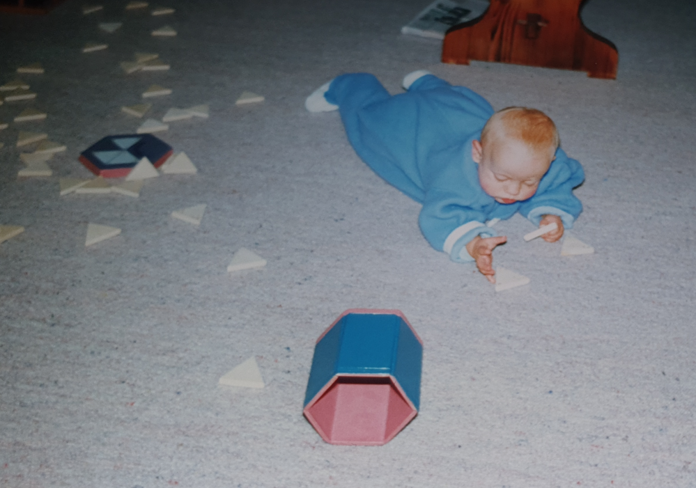 Schon im ersten Lebensjahr begann ich mein Hirn zu trainieren. Hier mit einer Art Domino, die mein Vater selbst gemacht hat.