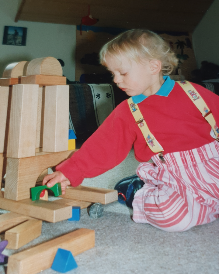 Ich hatte sehr viele Klötzli mit denen ich spielen konnte. Alles aus Holz. Damit habe ich Türme und kleine Burgen gebaut.
