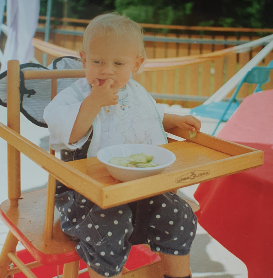 Dieses Foto hätte nie veröffentlich werden dürfen. Immerhin zeigt es... wie ich Gemüse esse. Oder doch nicht! Grüble ich es gerade wieder heraus?