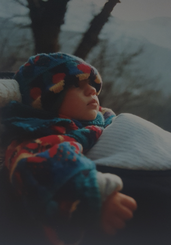 Das Neujahr verbrachten wir im Bergell. Ich wurde im Kinderwagen durch die schöne Landschaft chauffiert. Die Landschaft war in starke Brauntöne eingefärbt, durchlockert von einzelnen Schneefeldern. Ich staunte nicht schlecht und sog die Eindrücke neugierig ein.