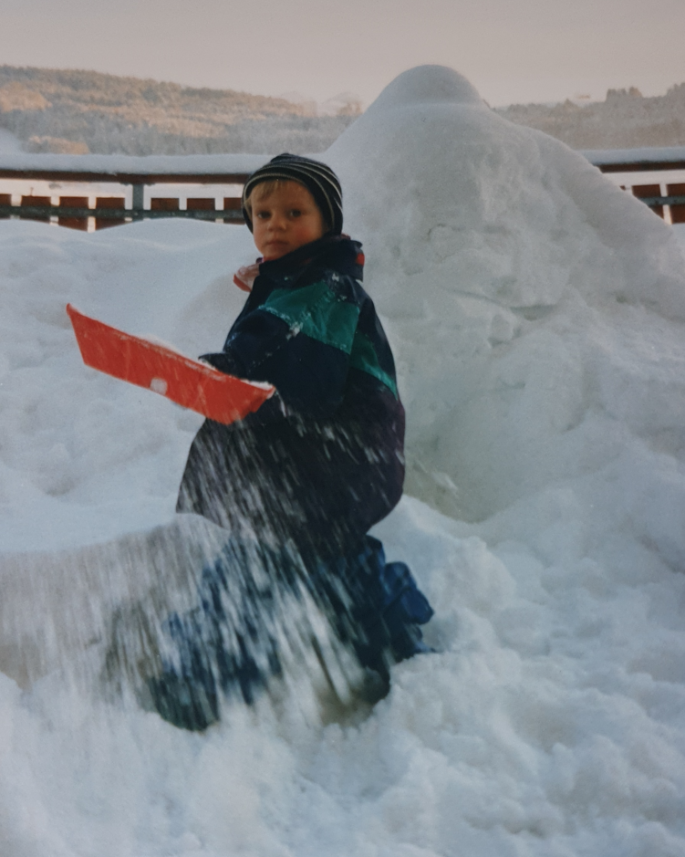 Ich übte mich im Schneeschaufeln und kämpfte gegen die Schneemassen auf unserer Terasse. Später, in Weissbad, hatten wir einen grossen Garten, wo ich gerne Schaufelte. Ich definierte die Wege und schaufelte auch gerne mal ein kleines Labyrinth.