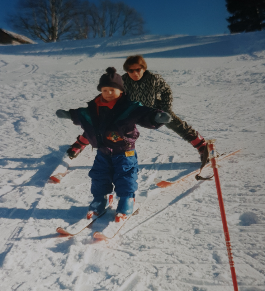 Meine ersten Abfahrten schaffte ich anfangs Jahr. Wenn man von der Mutter gejagt wird, hat man auch keine andere Wahl als zu fliehen. Ich fahre auch heute noch gerne schnell Ski.