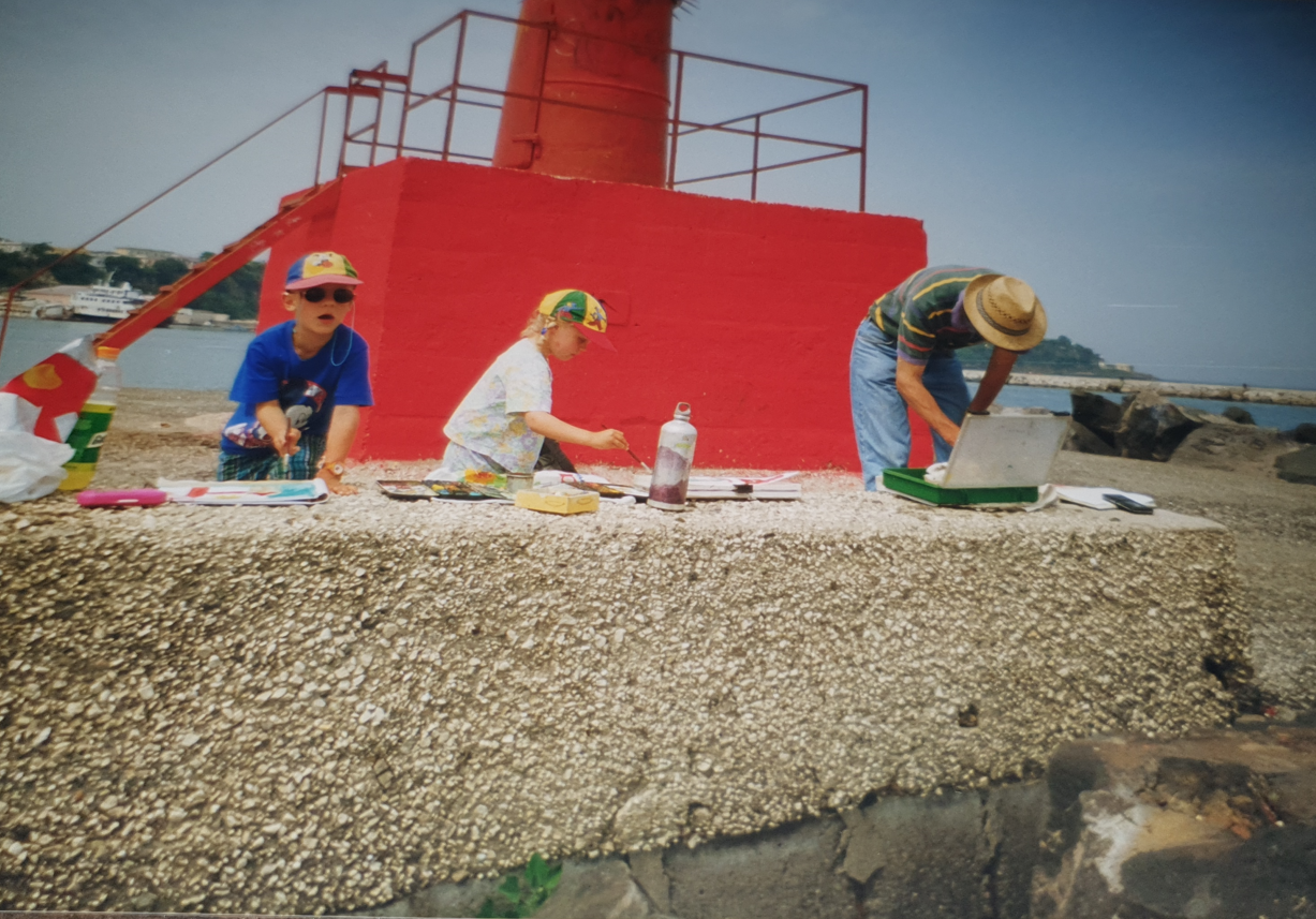 Im Nachtschnellzug in Zürich eingestiegen, geschlafen und in Neapel ausgestiegen. Danach auf eine Fähre umgestiegen, die uns zur Insel brachte. Dort malten wir und spielten am Strand.