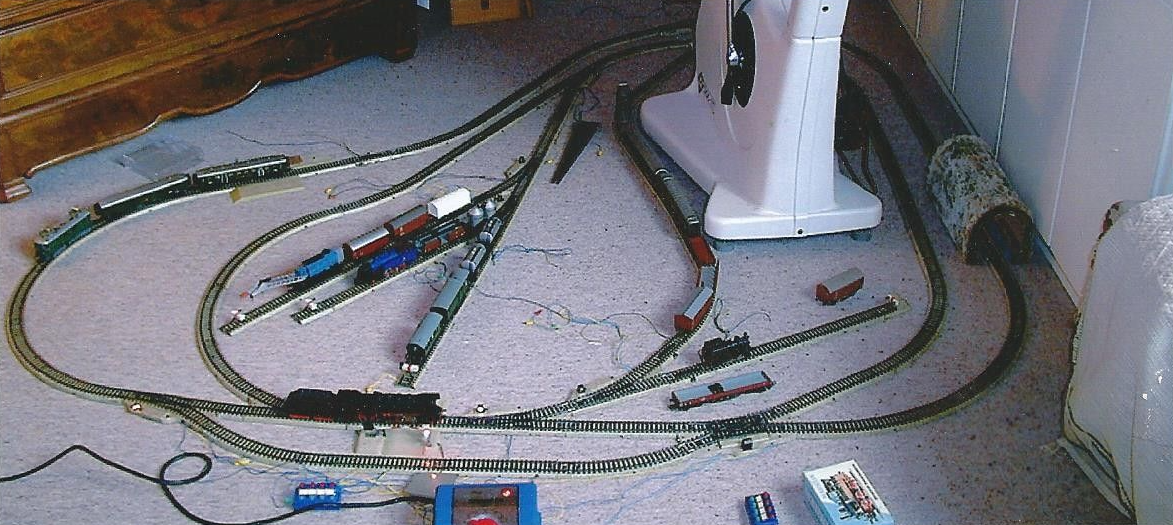 Ich habe von meinem Götti letztens das Starterpack C1 und C2 von Märklin erhalten und begeisterte mich extrem für die Modelleisenbahn. Zu Hause habe ich ein grosses Brett erhalten, worauf ich meine Konstruktionen aufbauen konnte. Zudem bekam ich am 17. April von meinem Grossvater seine alte Märklin M. Die habe ich zuerst probehalber aufgebaut und ausprobiert. Daraus entstand schlussendlich meine Begeisterung für Elektronik, worauf ich mich später beruflich versuchte zu etablieren.