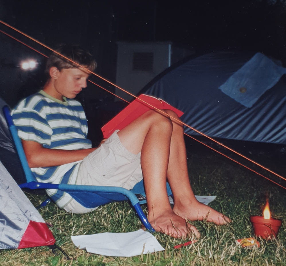 Im Sommer, als wir entlang des Bodensees umhergingen, besuchten wir einen Stand. Beim Verlassen sah ich auf einem Stand ein rotes Buch: Das rote Buch der Westmark! Ich hab mir sogleich das Buch gekauft und las mich in die Geschichte ein. Als ich mit den über 1000 Seiten fertig war, und in den Anhängen stöberte, realisierte ich, wie komplex diese Geschichte war. Vor allem die Welt die der Schriftsteller damit erschaffen hat, mit Sprachen, Kulturen, Gedichte und Liedern und ihrer ganz eigenen Geschichte. Ich besorgte mir alle Filme in der Extended Edition, begann mir die Schrift der Elben beizubringen und im Alltag anzuwenden und las noch weitere Gechichten aus Mittelerde von John Ronald Reuel Tolkien. Das "Der Herr der Ringe"-Fieber steigerte sich immer mehr und normalisierte sich erst so langsam 2009.