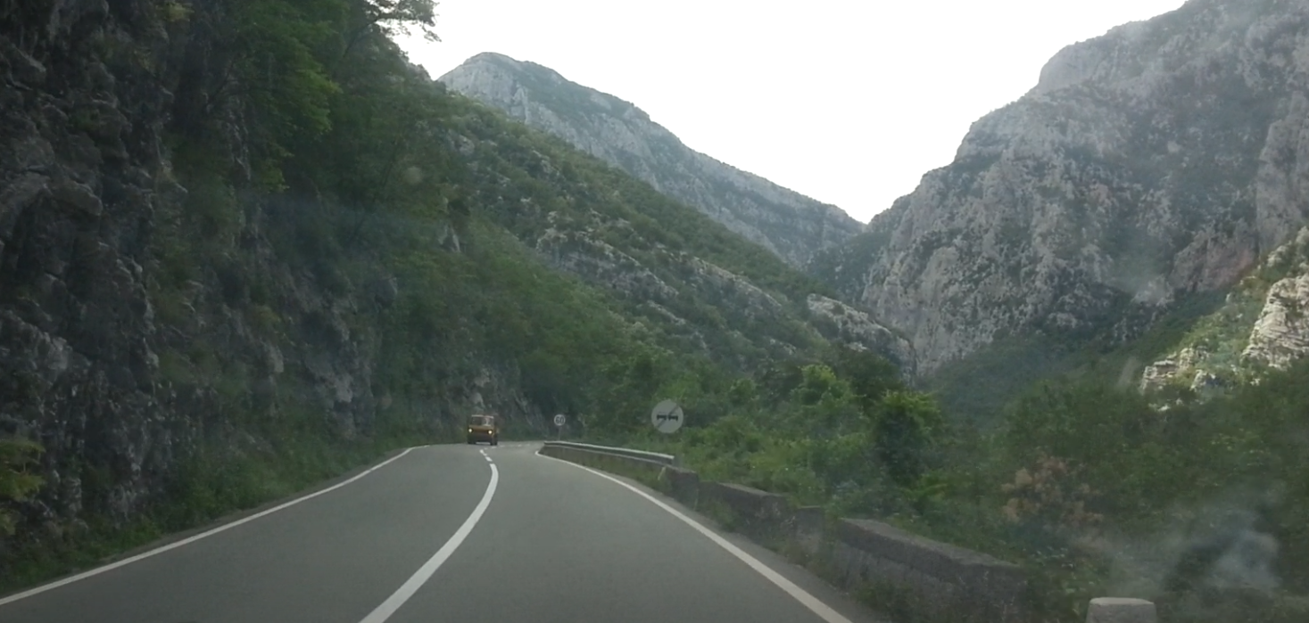 Bei der ersten Balkan-Tour ging es von Dubrovnik nach Belgrad. Dieses Mal ging es um 08:00 Uhr, frisch aufgetankt, weiter nach Süden, in neue Gefilde. Durch Montenegro durch bis nach Albanien nach Shkodra, an Paçram rechts vorbei, zwischen Khodel und Gjadër hindurch. Das Navi führte mich auf einen Pass nach Kallmet i Vogël in Richtung Fregën. Diese Strasse war überaschend frisch geteert. Auf der anderen Seite des Pass, war der Asphalt auf einmal... weg! Zuerst dachte ich, wir hätten hier die Grenze nach Kosovo passiert.