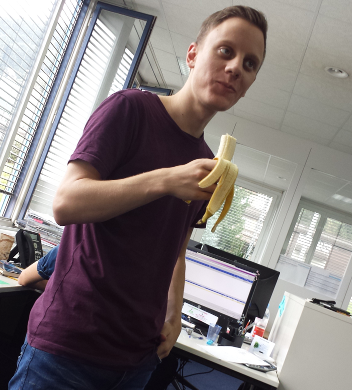 Am 14. September kaufte ich mir ein neues Sporttenu. Der Grund war ein soeben abgeschlossenes Abo beim Fitnesscenter gleich neben der Arbeitsstelle. Das Probetraining war gut und ich ging ab sofort jeden Dienstag- und Donnerstag-Abend nach der Arbeit. Gleich am nächsten Morgen des ersten Tages, probierte ich einen neuen zNüni: Kaffee, Energy-Milch-Drink mit Proteine und eine Banane.