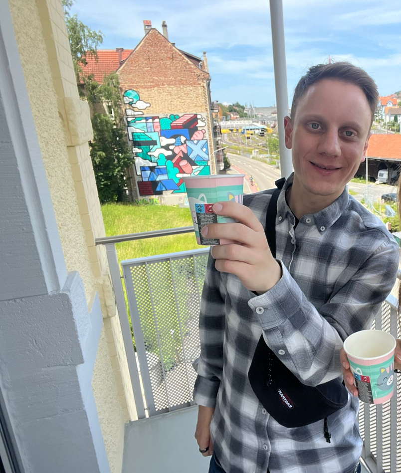 Als ein Arbeitskollege später auch unterwegs war, sah er eine Luna-Tasse und schenkte sie mir. Ich habe sie dann mit Bier eingeweiht.
